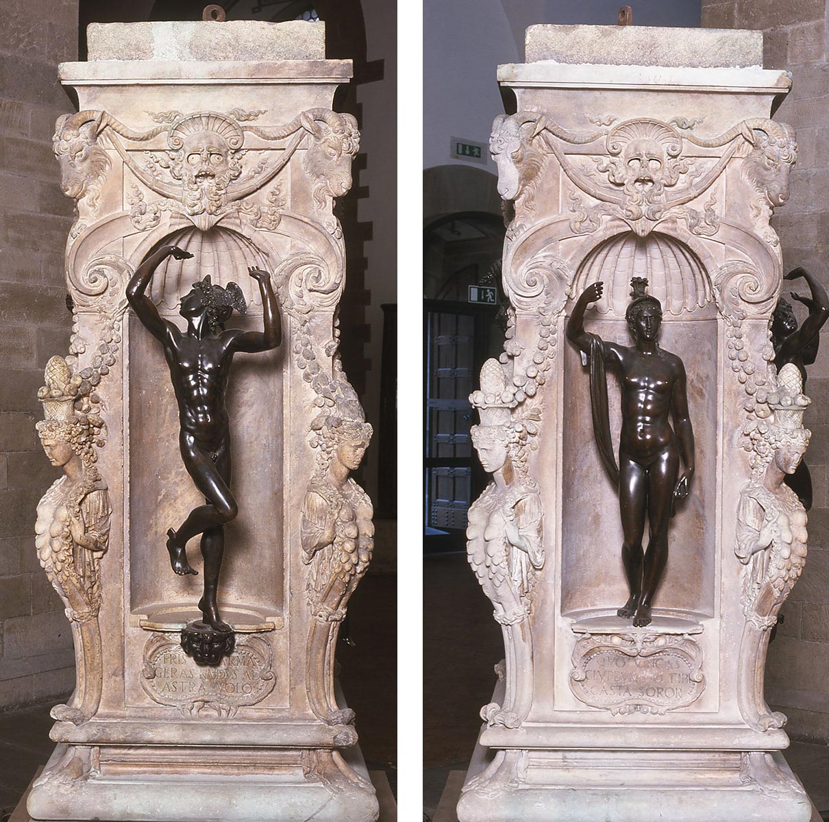Del Perseo, come anticipato, conserviamo due modelli, uno in cera e uno in bronzo, fatto piuttosto raro per la scultura rinascimentale. Sono peraltro le uniche due testimonianze delle fasi di lavoro dell’opera, dal momento che non ci sono arrivati disegni o bozzetti. Non sappiamo come siano giunti sino a noi: non ne viene fatta menzione negli inventari dei beni di Benvenuto Cellini, ragion per cui è probabile che l’artista li avesse donati a qualcuno a lui vicino. Ricomparvero nel 1826: erano in possesso di un pittore e mercante d’arte fiorentino, Fedele Acciai, che li propose agli Uffizi per l’acquisto: l’istituto accettò e i due modelli entrarono a far parte delle collezioni del museo, che poi nel 1888 li cedette al Museo Nazionale del Bargello. Il modello in cera presenta un’idea già piuttosto avanzata dell’opera: “Cellini”, ha scritto la studiosa Maria Grazia Vaccari, “punta alla resa dell’effetto complessivo, in modo da mettere il committente in condizione di poter valutare il progetto. Per questo non si sofferma a definire tutti i dettagli, limitandosi a suggerire alcune soluzioni, modellando, per esempio, solo uno dei calzari. La figura appare slanciata ed esile, con una muscolatura non molto sviluppata, ma la tensione del gesto vittorioso del braccio sinistro che leva la testa recisa e del destro che impugna ancora l’arma è già pienamente espressa”. Con il modello in bronzo, ci si avvicina ancor di più all’opera finita, dal momento che qui i dettagli sono molto più definiti, e il bozzetto dimostra, scrive ancora Vaccari, “come l’artista sia ancora legato al mondo dell’oreficeria nella ricerca di un ritmo elegante e di raffinatezza formale”. Il confronto coi modelli dimostra come l’opera monumentale acquisisca proporzioni decisamente più robuste, in linea con il portato allegorico del soggetto, ma forse anche per ragioni di statica. Non solo: cambia anche il volto di Perseo, che perde la naturalezza che aveva nel modello e acquisisce una maggiore bellezza ideale, adatta a un eroe greco.